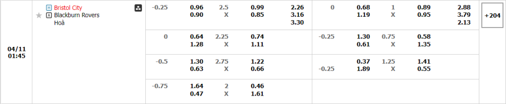 Kèo Châu Âu vẫn tiếp tục là sự nhỉnh hơn dành cho Bristol City do đang được thi đấu trên sân nhà, dù vậy nhưng sự chênh lệch giữa hai mức ăn là không quá nhiều (2.26 so với 3.16). Như đã phân tích, bản thân Blackburn cũng không phải là đối thủ dễ chịu và trong thời điểm họ cần phải quyết tâm vươn lên thì rõ ràng việc đánh bại họ sẽ là điều gì đó dễ dàng cho Bristol City.