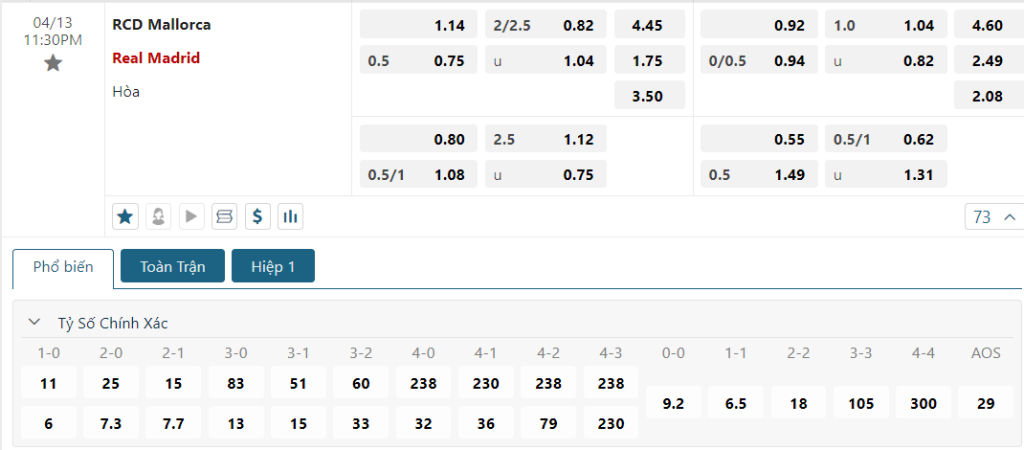 Real Madrid dưới thời Ancelotti vẫn đang thể hiện được một lối chơi cởi mở và hiệu quả bậc nhất La Liga tính đến hiện tại, sau 30 vòng đấu nhưng Los Blancos đã thành công mang về đến 66 bàn thắng. Dù vậy, nhưng với lối chơi lì lợm và đầy khó chịu của Mallorca ở thời điểm hiện tại, thì khả năng nổ tài với mức kèo 2.25 bàn vẫn sẽ để lại những bỏ ngỏ.