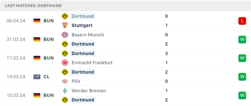 Phong độ đội bóng B. Monchengladbach vs Dortmund