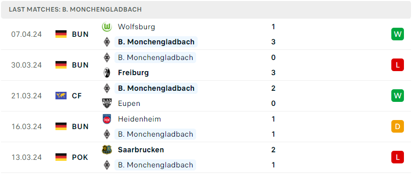 Phong độ đội bóng B. Monchengladbach vs Dortmund