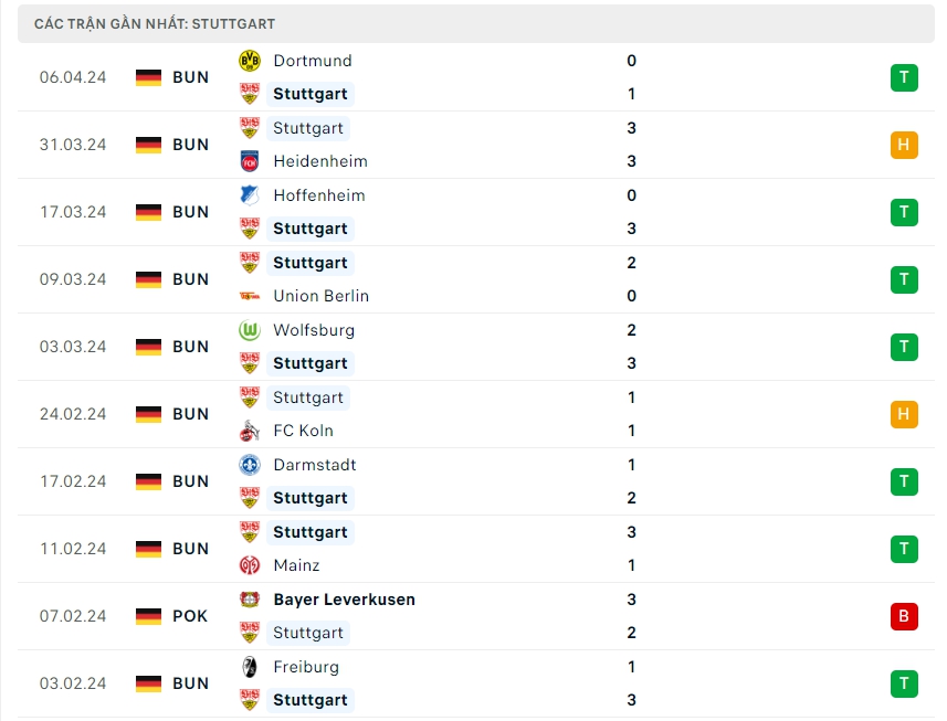 Phong độ đội bóng Stuttgart vs Eintracht Frankfurt