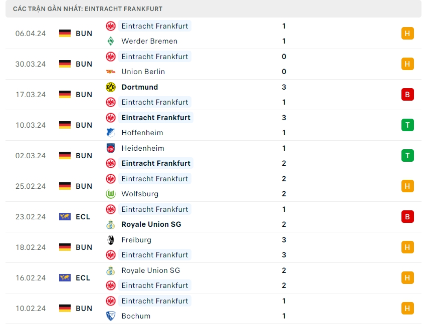 -Phong độ Eintracht Frankfurt