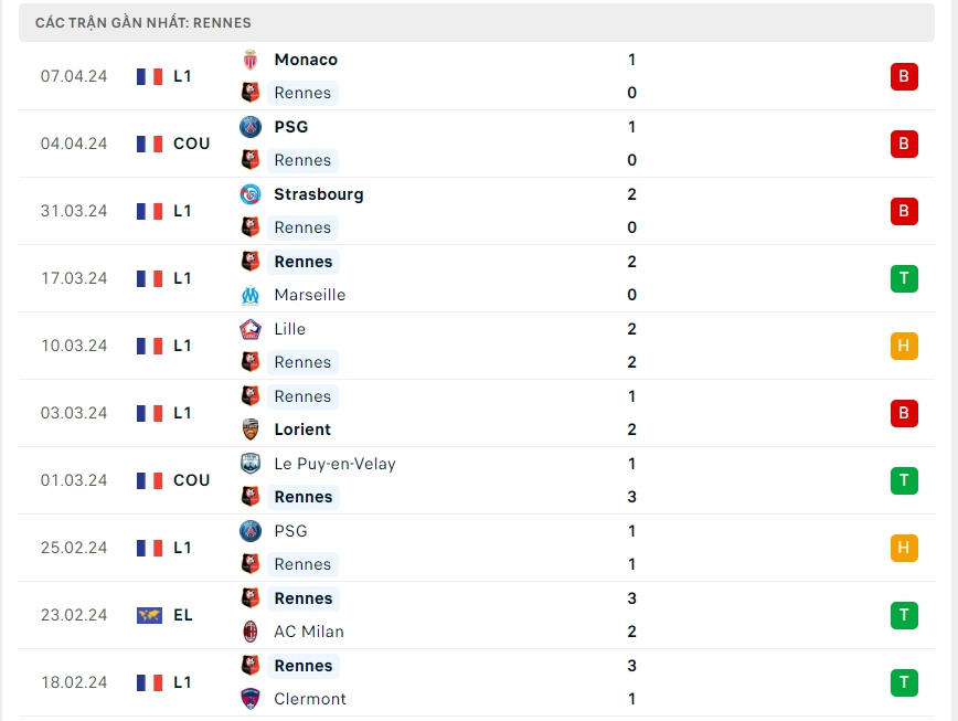-Phong độ Rennes