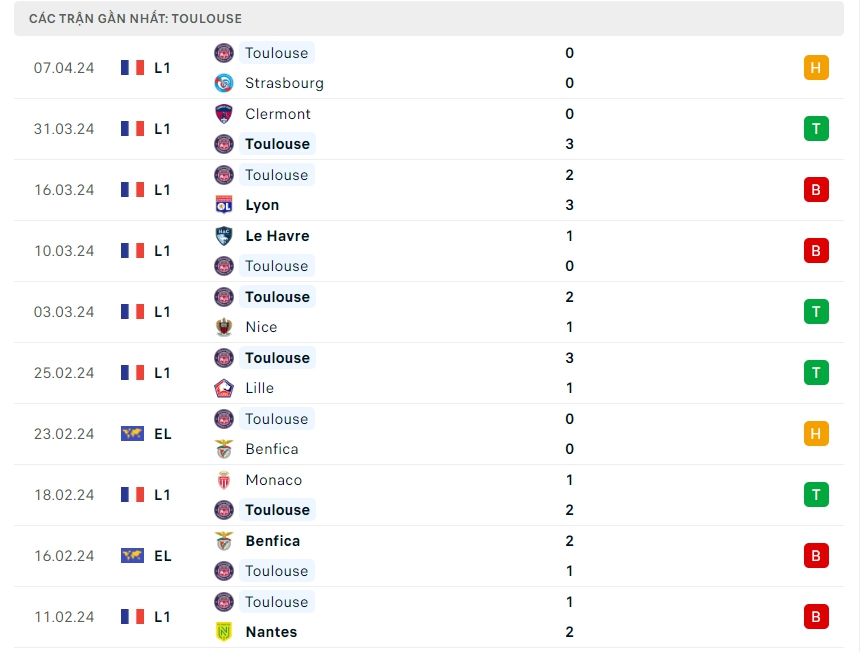 Phong độ đội bóng Rennes vs Toulouse