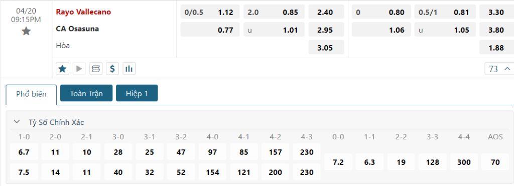 Với lợi thế là sân nhà thì Vallecano vẫn đang là cái tên nhận được sự ưu ái trong kèo đấu này, qua mức giá niêm yết trên sàn giao dịch là 0.25. Mặc dù phong độ của Vellecanos đang rất tốt là vậy, thế nhưng trước lối đá thực dụng và đầy tính kỷ luật của Osasuna thì tin chắc rằng sẽ chẳng có bất kỳ sự dễ dàng nào dành cho đoàn quân Inigo Pérez trong trận đấu sắp tới. Chưa kể, bản thân Osasuna cũng đang sở hữu phong độ khá ổn định và thậm chí là sự tự tin cực cao khi vừa có thắng lợi 3 sao trước Almeria. Khó khăn duy nhất của Los Rojillos có vẻ là việc phải làm khách, tuy nhiên với phong độ sân khách của họ ở hiện tại thì điều đó gần như không còn là vấn đề quá lớn, 5 lần hành quân gần nhất thì họ đã thắng 2 và hòa 1. Chính vì lẽ đó, hoàn toàn có thể đặt niềm tin vào các vị khách trong kèo Châu Á.
