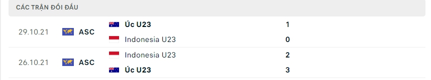 Lịch sử thi đấu của U23 Indonesia vs U23 Úc
