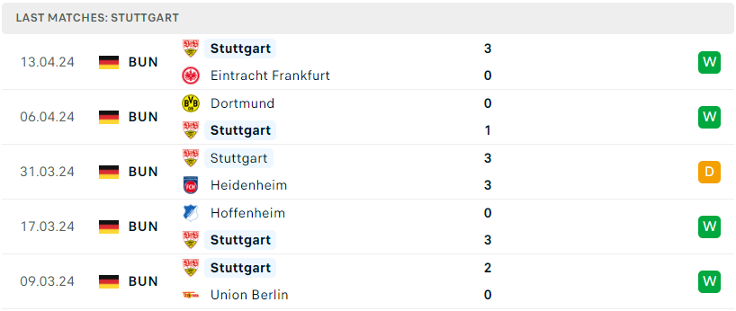 Phong độ đội bóng Werder Bremen vs Stuttgart