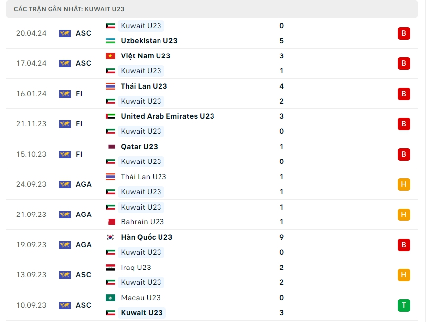 Phong độ đội bóng U23 Kuwait vs U23 Malaysia