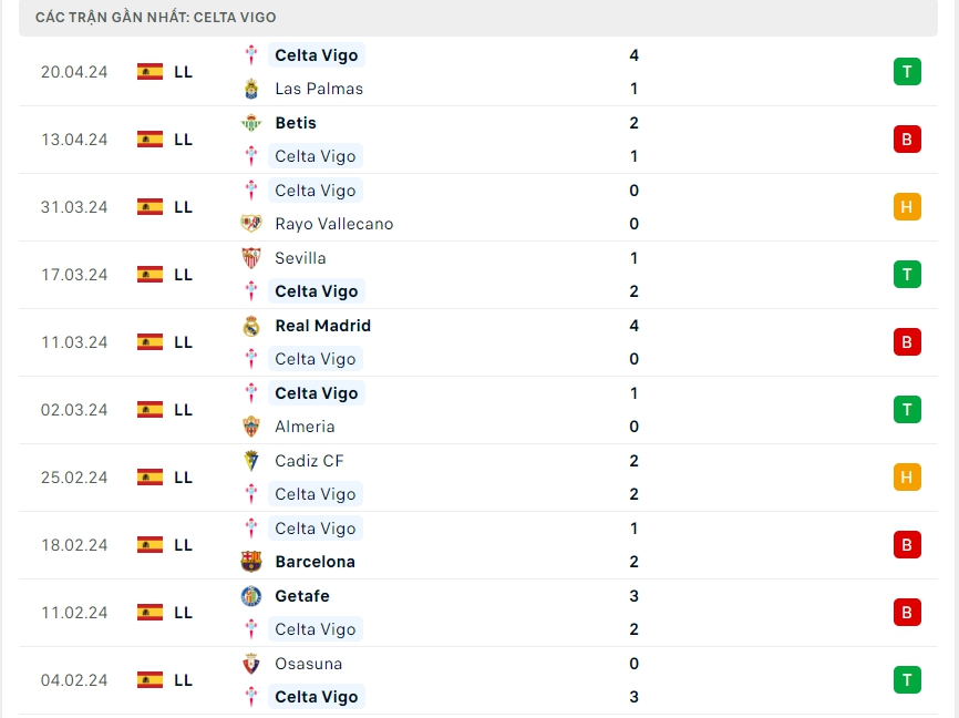-Phong độ Celta Vigo