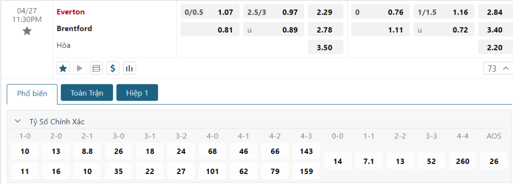 Với điểm tựa sân nhà thì Everton hiện vẫn đang là tập thể nhận được sự ưu ái trong kèo đấu này, qua mức giá niêm yết trên sàn giao dịch 0.25. Mặc dù phong độ của The Toffees là không quá xuất sắc ở hiện tai, tuy nhiên về cơ bản đoàn quân Sean Dyche vẫn luôn sở hữu sự khó lường cần thiết. Do vậy mà Brentford dù đang khởi sắc trở lại nhưng chắc chắn cũng sẽ gặp không ít khó khăn trong chuyến hành quân sắp tới. Không những vậy, trên sân khách Brentford cũng tỏ ra khá cập rập và thiếu sự ổn định, khi Bầy Ong đã phơi áo đến 4 và hòa 1 trong 6 lần hành quân gần nhất. Nhìn chung thì Goodison Park vẫn luôn là thánh địa đầy vững chắc chắc Everton, với việc họ đã bất bại đến 4/5 trận đấu gần nhất. Chính vì những sự vượt trội trên thống kê này, hoàn toàn có thể đặt niềm tin vào nửa xanh vùng Merseyside trong trận đấu sắp tới.