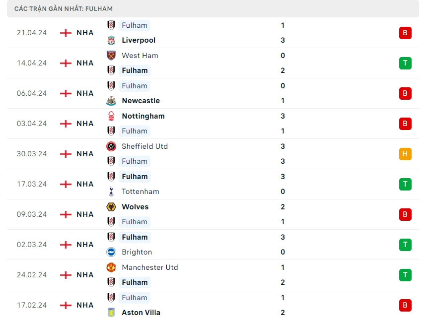 -Phong độ Fulham