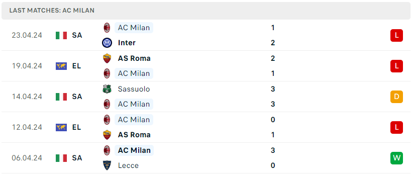 Phong độ của AC Milan