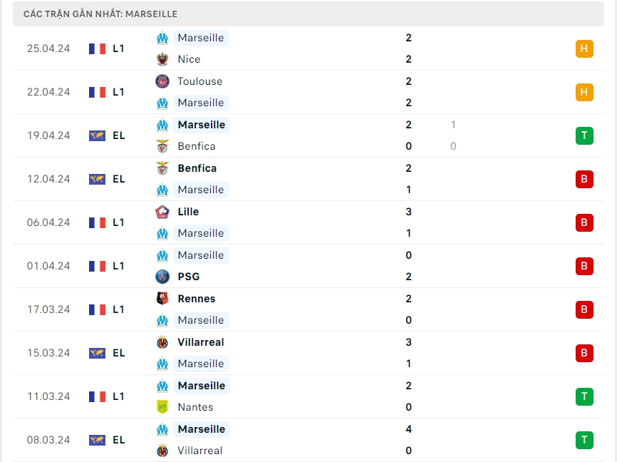 -Phong độ Marseille