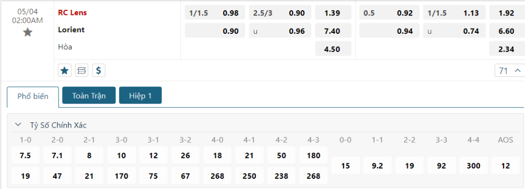 Kèo Châu Âu vẫn đang là sự áp đảo hoàn toàn dành cho Lens, khi mức ăn của họ là 1.39 và con số này của các vị khách là 7.40. Trên thực tế, trong bối cảnh mà phong độ của Lorient là cực kỳ bết bát ở hiện tại thì với lợi thế sân nhà Lens sẽ có thừa sự tự tin để khiến tập thể vùng Bretagne phải ôm hận.