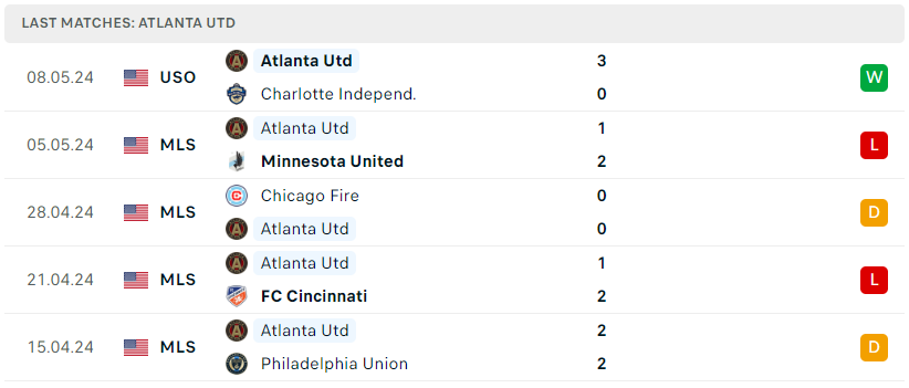 Phía đối diện, Atlanta Utd vẫn thể hiện bộ mặt của mùa giải trước và trận thắng 3 sao trước Charlotte Independ vừa qua cũng chỉ mới là thắng lợi thứ 3 mà họ có được sau 10 vòng đấu. Nhìn chung, đoàn quân Gonzalo Pineda cũng chỉ thuộc dạng tầm trung tại MLS và dù có tiến bộ thì chắc chắn vẫn không đáng kể. Những vấn đề về lối chơi vẫn còn đó và chuyến hành quân đến sân của Cincinnnati sắp tới sẽ tiếp tục được dự báo là chuyến đi “lành ít dữ nhiều”.