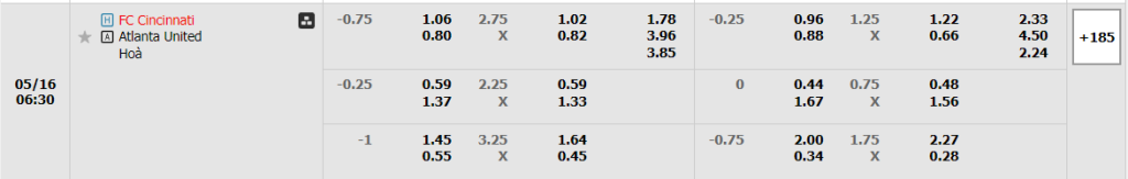 Bảng tỷ lệ kèo bóng đá trận đấu FC Cincinnati vs Atlanta Utd