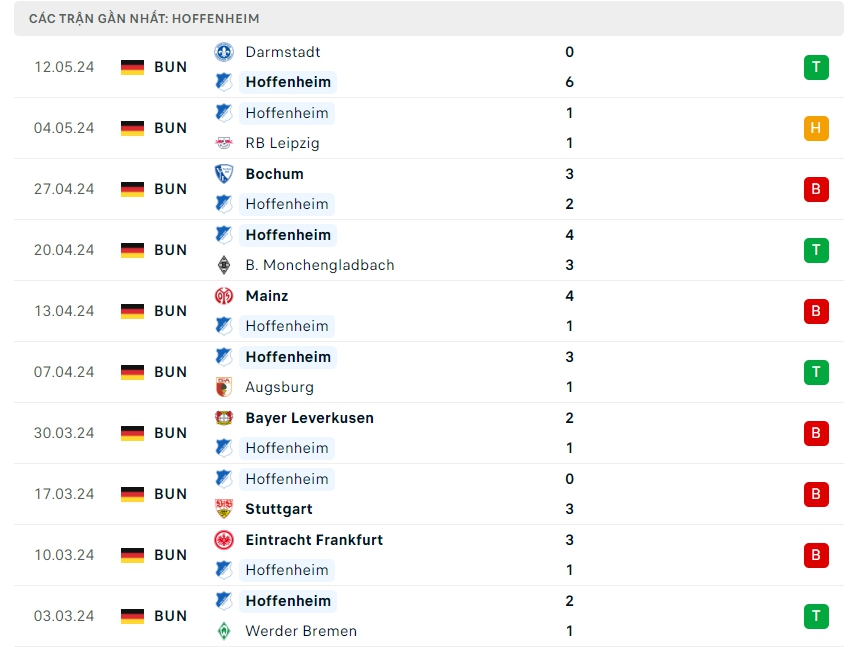 -Phong độ Hoffenheim