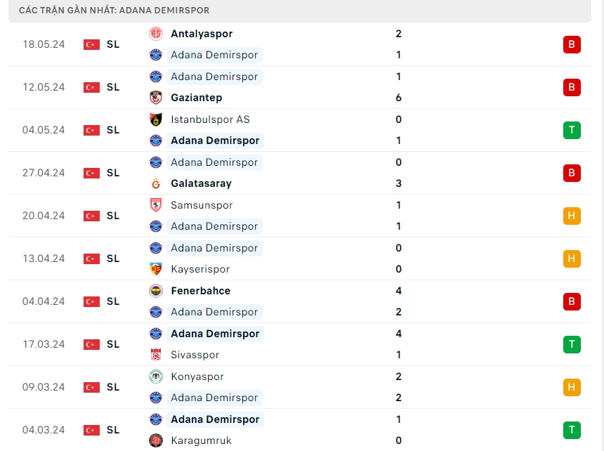 Phong độ đội bóng Adana Demirspor vs Basaksehir