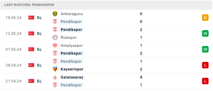 Phong độ của Pendikspor
