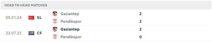 Thành tích đối đầu của Pendikspor vs Gaziantep