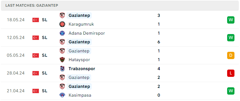 Phong độ của Gaziantep