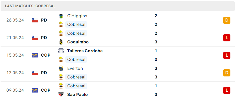 Phong độ của Cobresal