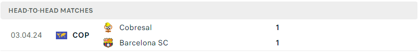 Thành tích đối đầu của Barcelona SC vs Cobresal