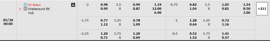 Kèo châu Âu cũng sẻ là sự ưu thế lớn cho đội chủ nhà trong trận đấu tới khi mức ăn của chủ nhà Brann là 1.19 trong khi con số bên phía Kristiansund đã là 12.00 . Ưu thế sân nhà cộng với chất lượng đội hình cùng với lịch sử đối đầu ủng hộ thì Brann sẻ dễ dàng có được chiến thắng trong trận đấu tới.