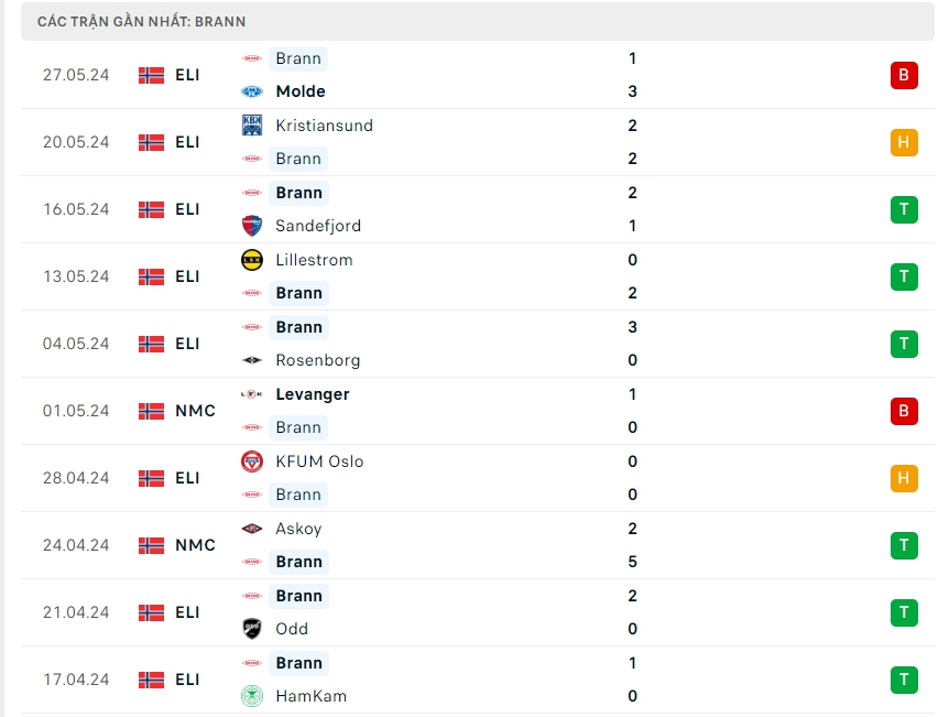 Phong độ đội bóng Brann vs Kristiansund