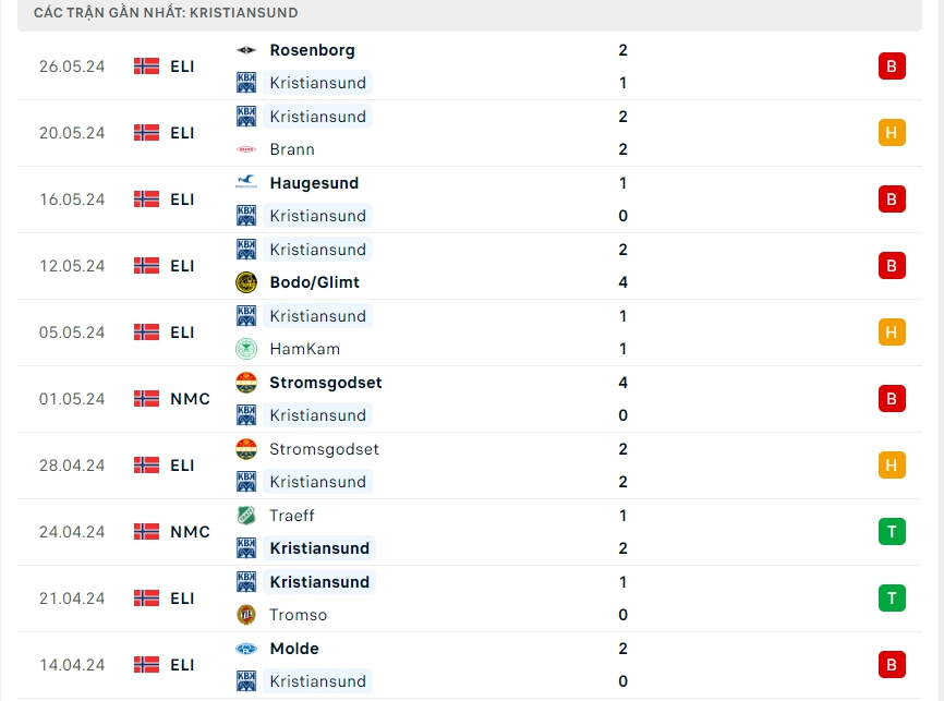 -Phong độ Kristiansund