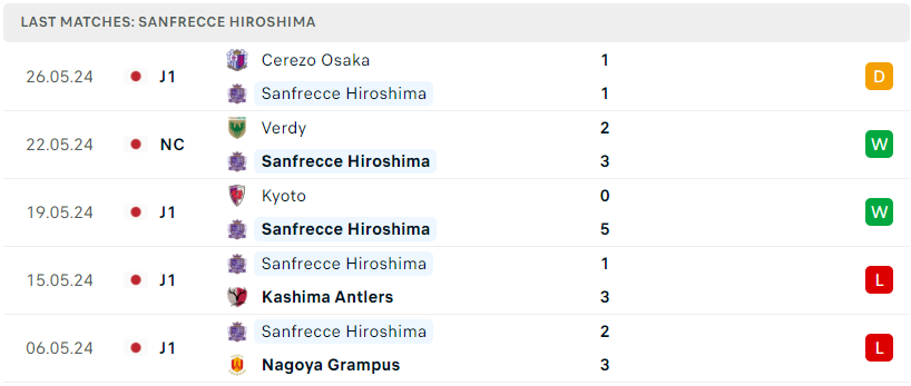 Phong độ của Sanfrecce Hiroshima