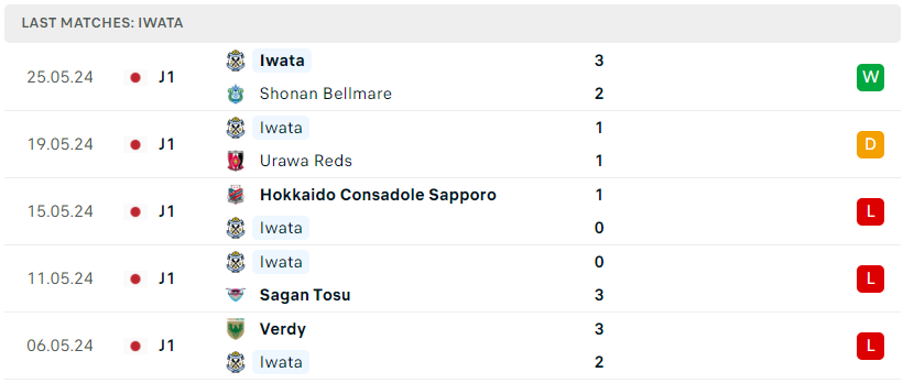 Bên phía kia, sau khoảng thời gian đầy cập rập ở đầu mùa giải, tân binh Iwata cũng đang dần thích nghi với JLeague. Màn lội ngược dòng không tưởng trước Shonan Bellmare ở vòng đấu trước thực tế đã là trận bất bại thứ 2 liên tiếp của họ. Với 18 điểm hiện có thì Iwata đang tạm xếp ở vị trí thứ 13 trên BXH. Dù vậy, nhưng cách biệt 4 điểm so với nhóm cầm đèn đỏ là khoảng cách chưa an toàn và mọi thứ hoàn toàn có thể đảo chiều nếu họ thi đấu không tốt ở những vòng đấu tới.