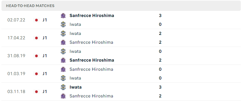 Thành tích đối đầu của Sanfrecce Hiroshima vs Iwata