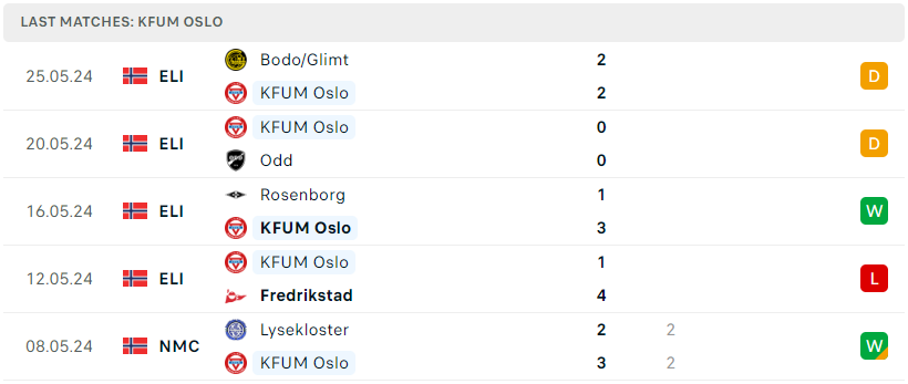 Phong độ của KFUM Oslo
