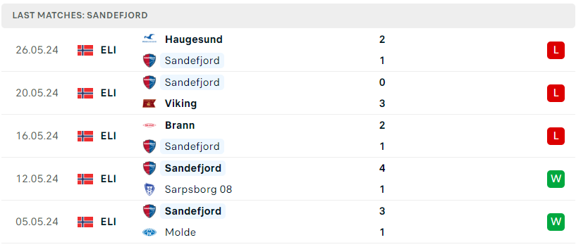 Bên kia chuyến tuyến, những vấn đề liên tiếp xuất hiện trong lối chơi của Sandefjord và điều này ngay lập tức khiến họ phải trả giá bằng chuỗi 3 thất bại liên tiếp. Kể từ đầu mùa thì họ cũng chỉ mang về 2 chiến thắng và hiện chôn chân ở vị trí áp chót trên BXH. Màn trình diễn của Sandefjord quả thật là chưa đáp ứng được kỳ vọng và nếu cứ thi đấu với trạng thái phong độ như hiện tại thì thứ chờ đợi họ đó chính là một xuất xuống hạng.