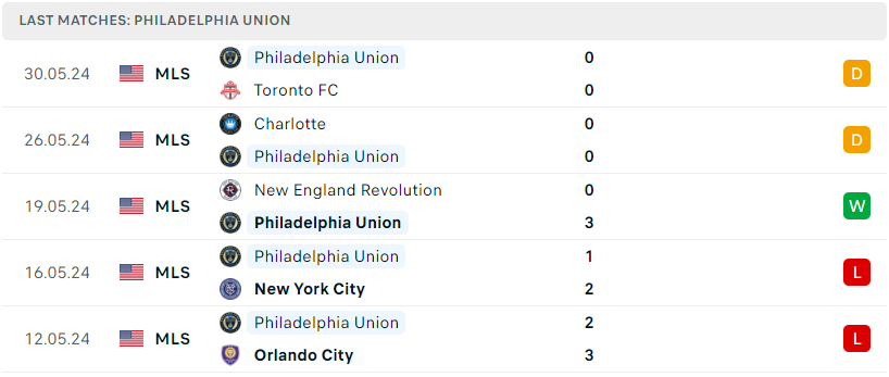 Phong độ của Philadelphia Union