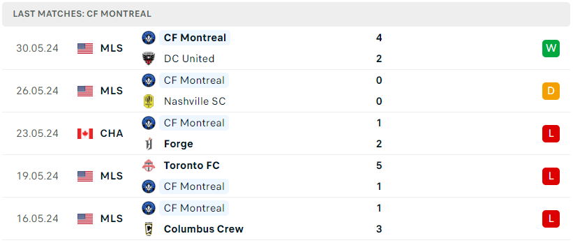 Phong độ của CF Montreal