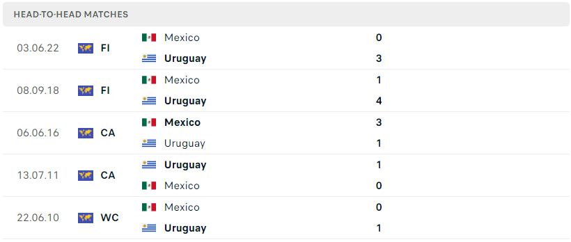 Thành tích đối đầu của Mexico vs Uruguay