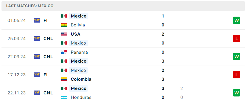 Phong độ của Mexico trong năm vừa qua thực tế cũng là khá tốt khi họ đã tiến đến trận chung kết Concacaf Nations League và chỉ phải chịu thua trước một đội tuyển Mỹ quá mạnh và thăng hoa. Đoàn quân Jaime Lozano hiện cũng đang rất tích cực chuẩn bị cho chiến địch Copa America vào cuối tháng 6. Nếu cứ tiếp tục phát huy lối chơi đầy lì lợm cùng phong độ trên mức trung binh như hiện tại, El Tri chắc chắn sẽ là một trong những ứng cử viên nặng ký tại Cup Nam Mỹ sắp tới.