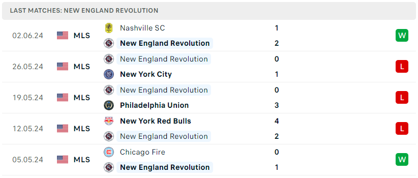 Phong độ đội bóng New England Revolution vs New York Red Bulls