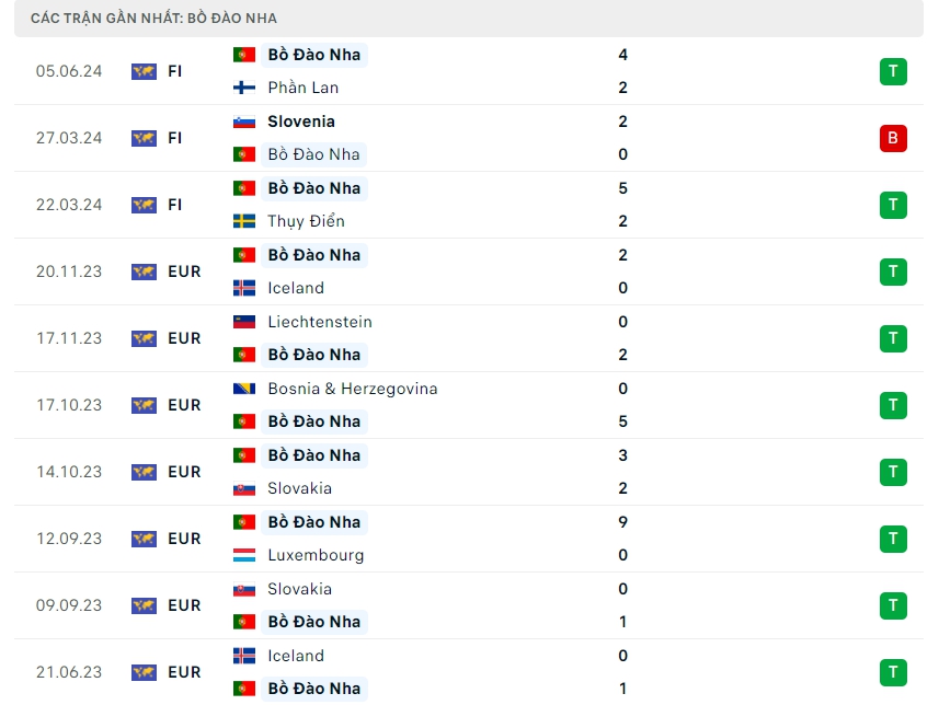 -Phong độ Bồ Đào Nha