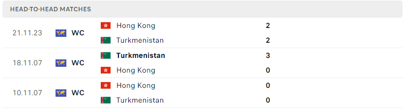 Thành tích đối đầu của Turkmenistan vs Hồng Kông