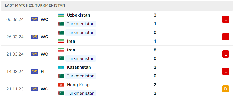 Phong độ đội bóng Turkmenistan vs Hồng Kông