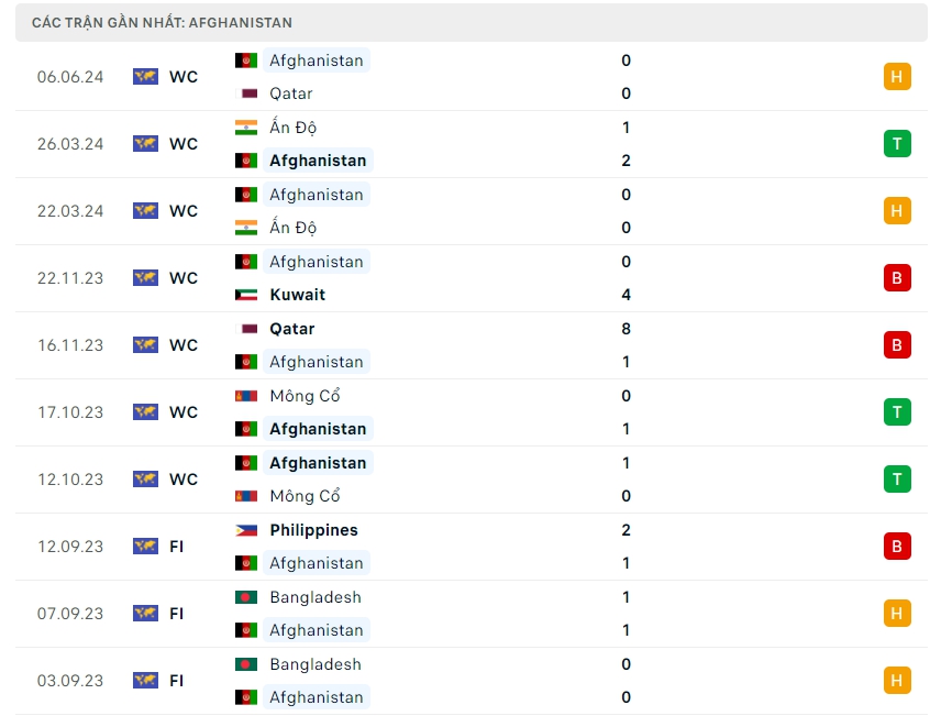 -Phong độ Afghanistan