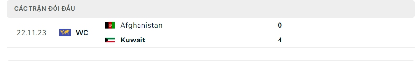 Lịch sử thi đấu của Kuwait vs Afghanistan