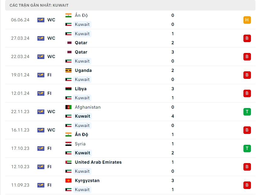 Phong độ đội bóng Kuwait vs Afghanistan