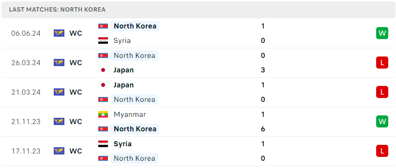 Phong độ đội bóng Triều Tiên vs Myanmar