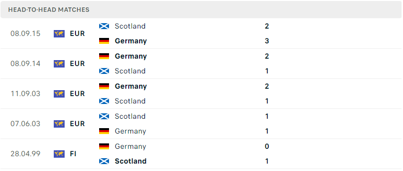 Thành tích đối đầu của Đức vs Scotland