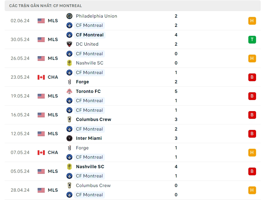Phong độ đội bóng CF Montreal vs Real Salt Lake