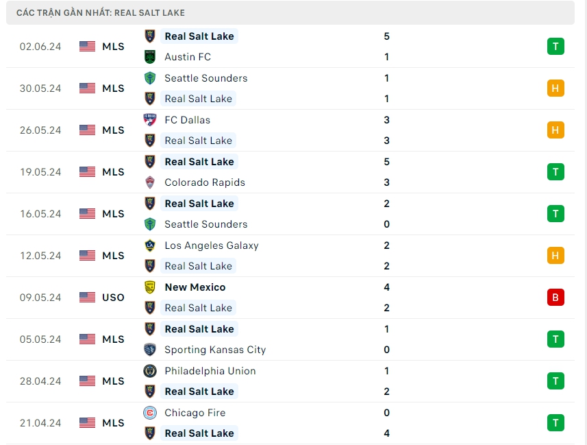 Ở phía bên kia chiến tuyến, Real Salt Lake đang duy trì được phong độ tốt thời gian qua, trải qua 17 vòng đấu họ có cho mình 9 chiến thắng, 6 hòa và nhận 2 thất bại, có được 33 điểm và đang dẫn đầu trên BXH, hàng công ghi đến 36 bàn thắng, bên cạnh hàng thủ nhận 19 bàn thua, 5 trận xa nhà gần nhất, Real Salt Lake có cho mình 10 bàn thắng và hàng thủ cũng nhận về 11 bàn thua.